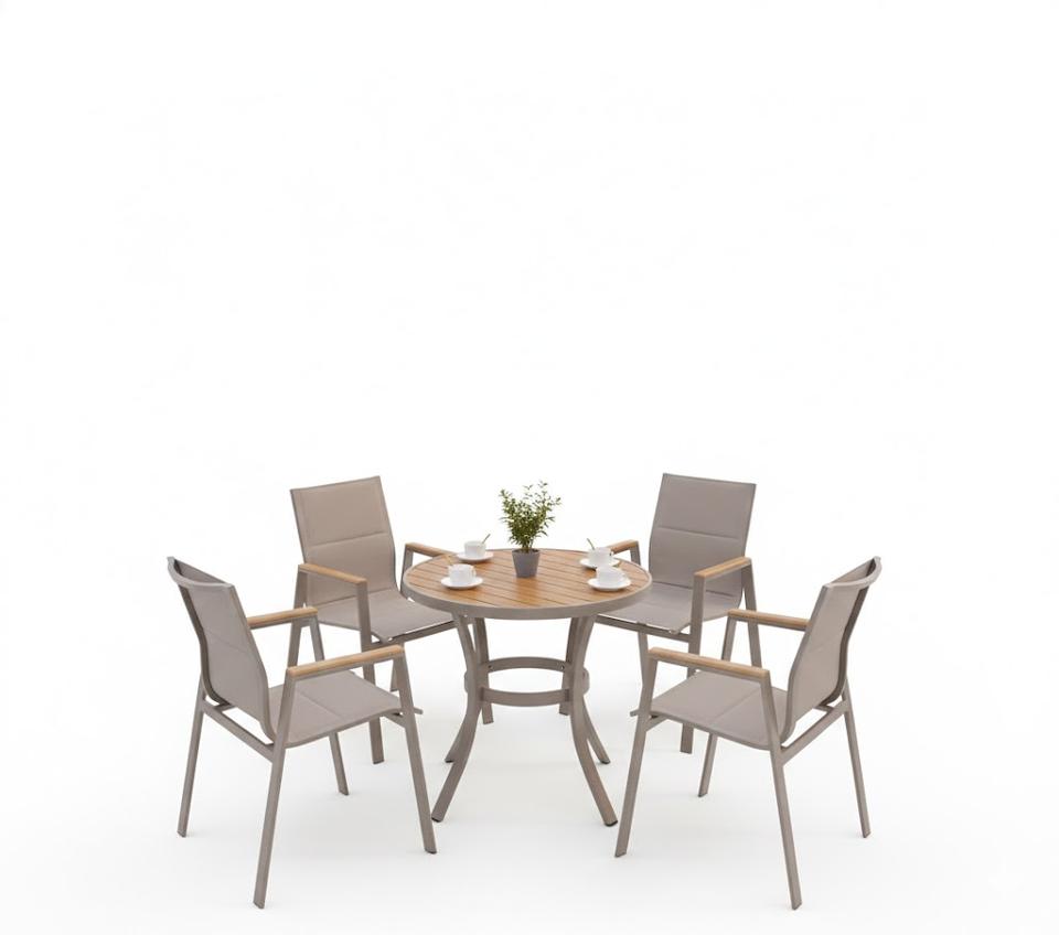 Ensemble de salle à manger moderne en WPC pour extérieur, table et chaises de jardin en aluminium imperméables, prix d'usine, pour villa, terrasse et complexe hôtelier