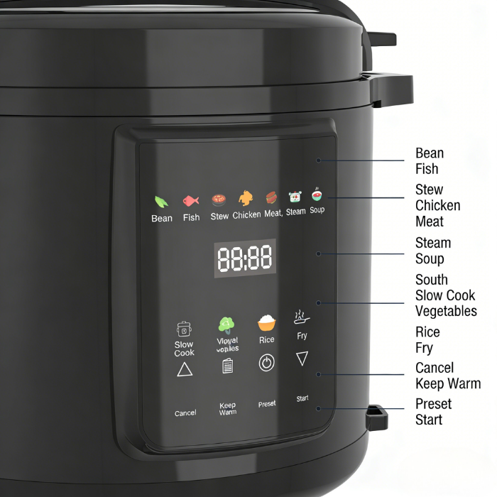 Cuisinière à pression multifonctionnelle 8 litres 1200 watts 11-en-1 pour la cuisine domestique, prix d'usine