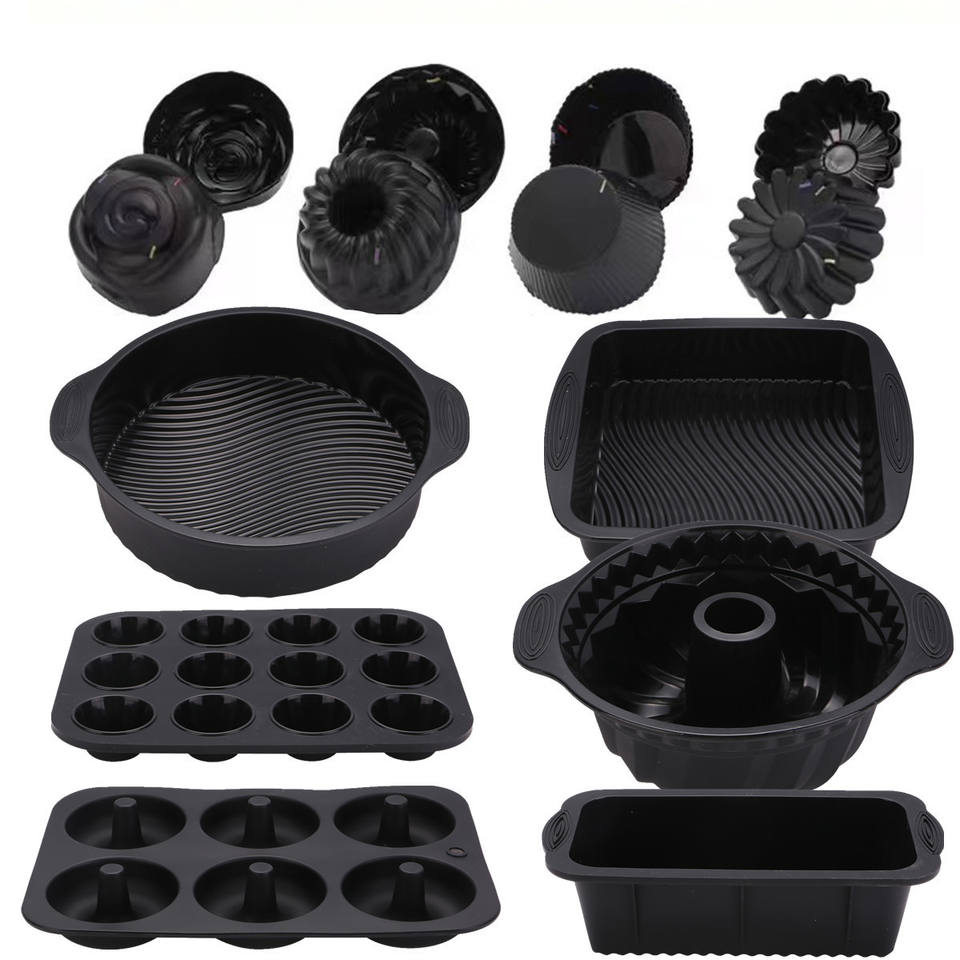 Prix d'usine, moules à gâteaux en silicone antiadhésifs multicolores, ensemble de moules à gâteaux en silicone, moules à muffins, moules à pizza, moules à pain pour la cuisson