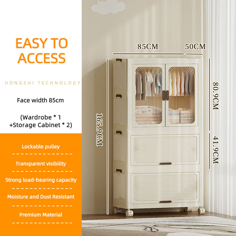 Armoire pliante en plastique multi-niveaux à prix d'usine, armoire latérale pour vêtements de bébé, porte transparente moderne, anti-poussière