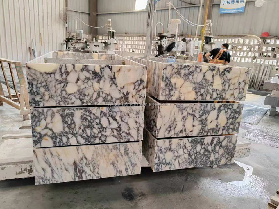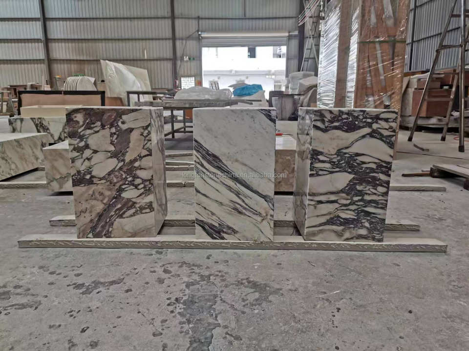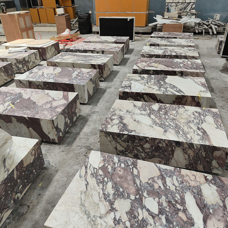 Prix d'usine, marbre Calacatta Viola naturel de 5 mm, composite de granit de 13 mm, socle en cube, table d'appoint italienne Viola pour chambre à coucher
