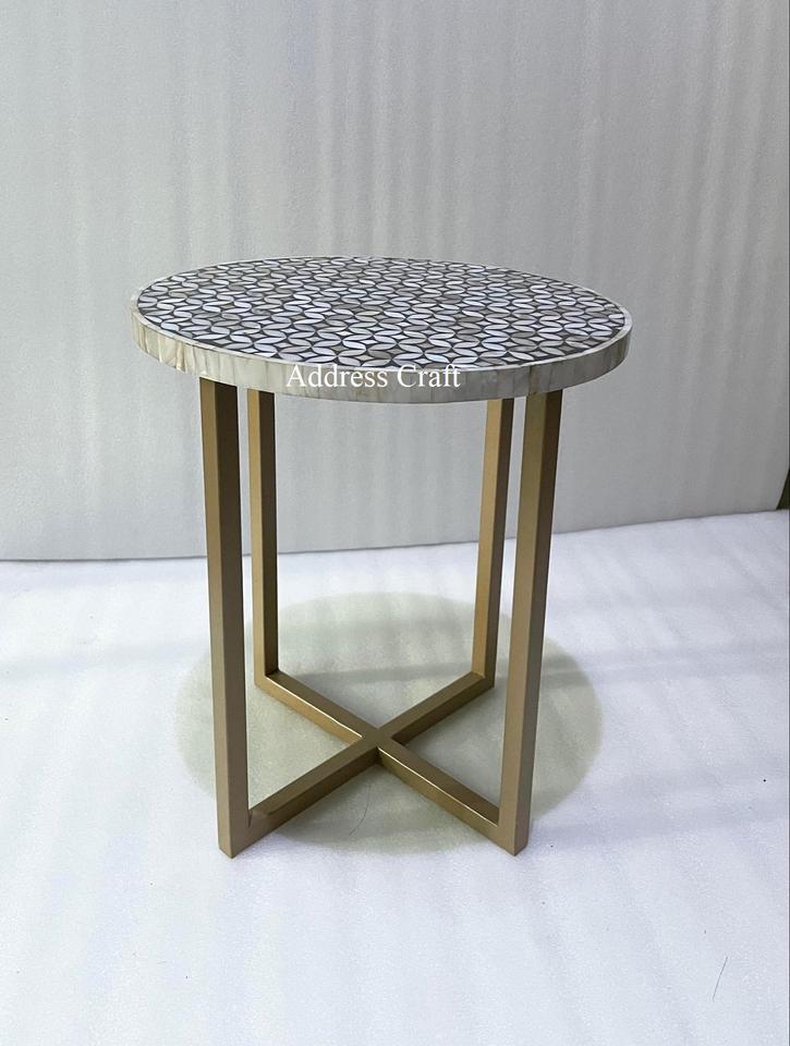 Table basse ronde moderne en bois naturel/insertion en nacre/résine, prix d'usine, meubles élégants pour la maison