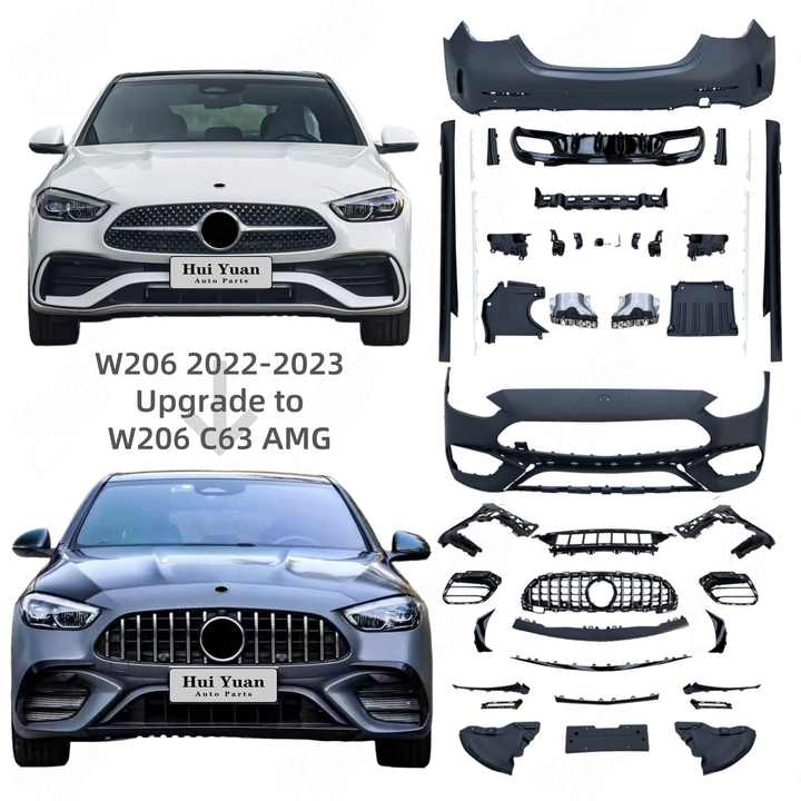 Prix d'usine Pièces de carrosserie en plastique PP Pare-chocs Kit carrosserie pour Mercedes Benz Classe C W206 2021+ Transformation en style C63 AMG