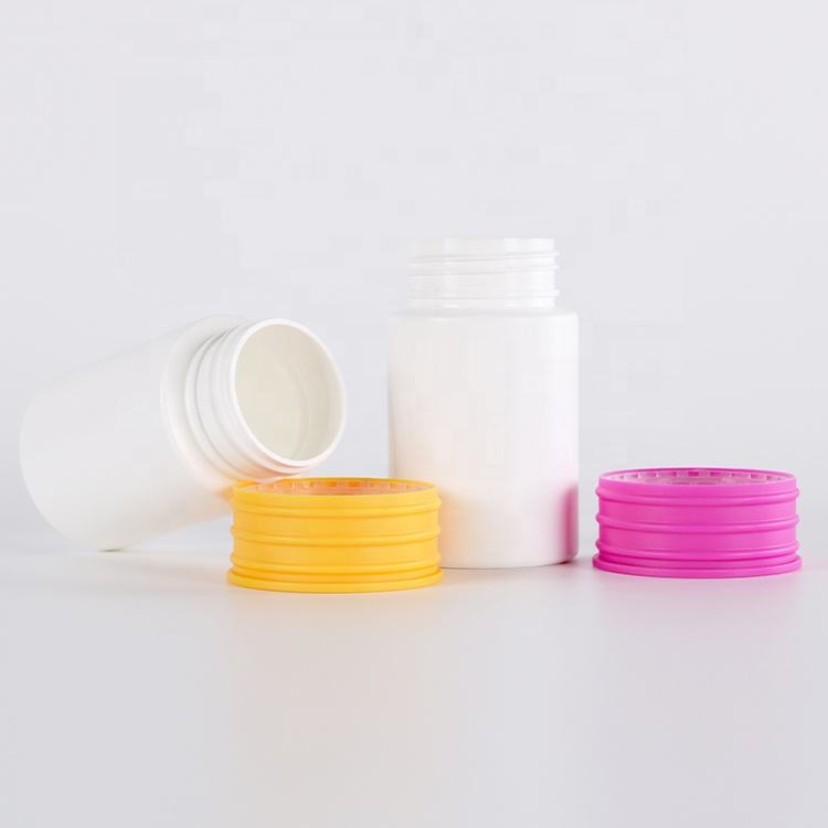 Flacon de pilules en HDPE à double bouchon à vis résistant aux enfants, qualité pharmaceutique, prix d'usine