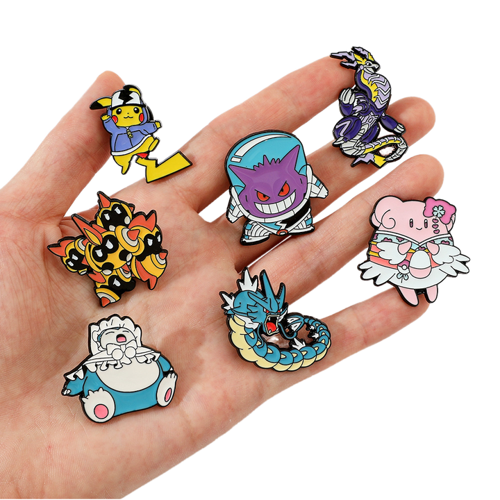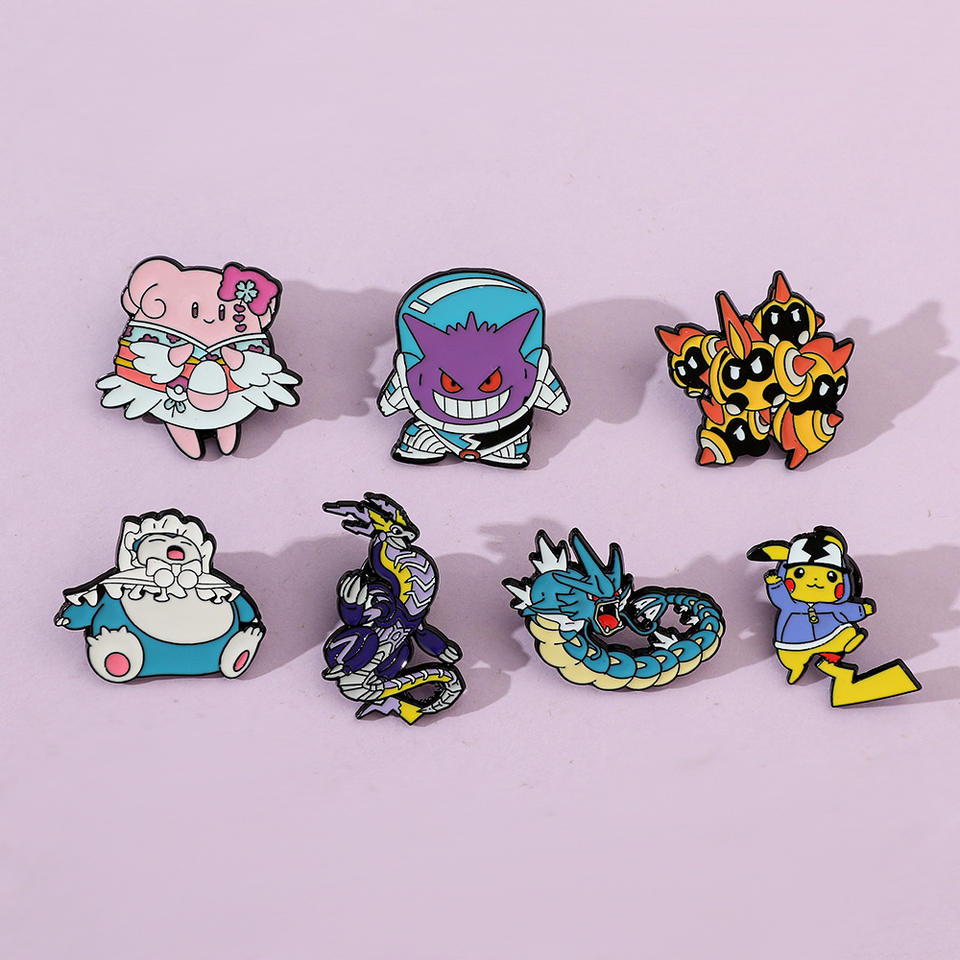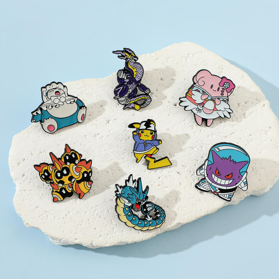 Prix d'usine Lots de broches Pokémon Pikachu Snorlax Gyarados, épingles de revers en alliage métallique, cadeau tendance pour Halloween