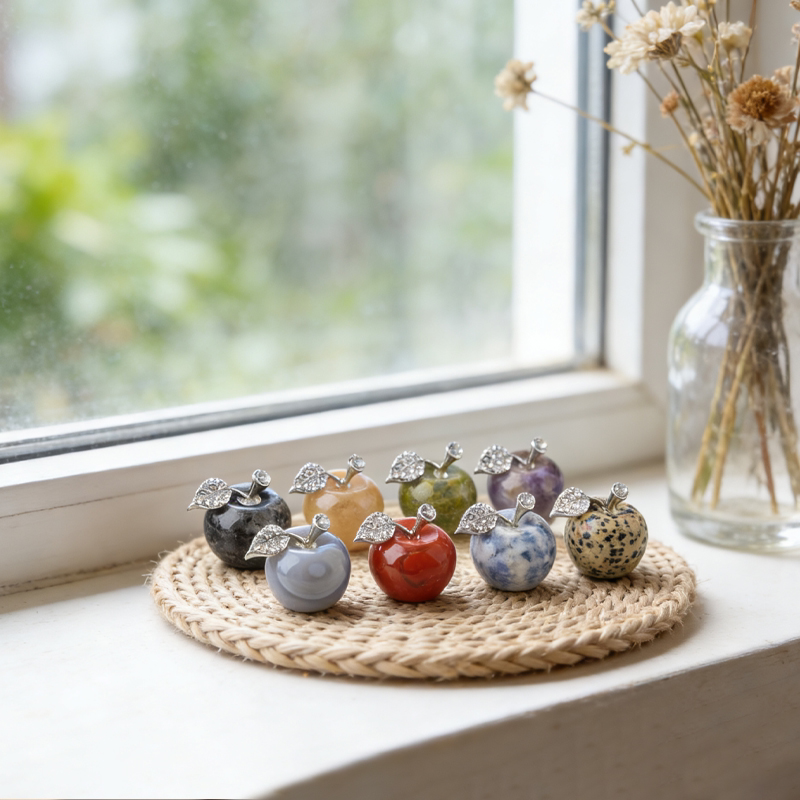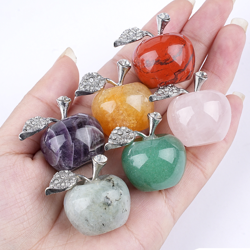 Prix d'usine, cristal poli pour la guérison énergétique et spirituelle, améthyste, quartz rose, sculpture de pomme, artisanat pour la décoration de la maison