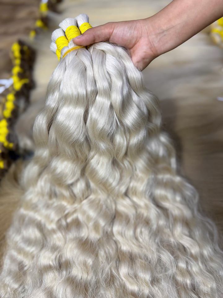 Prix d'usine Cheveux humains naturels en vrac couleur platine 100% extensions de cheveux humains vietnamiens de haute qualité ondulation naturelle