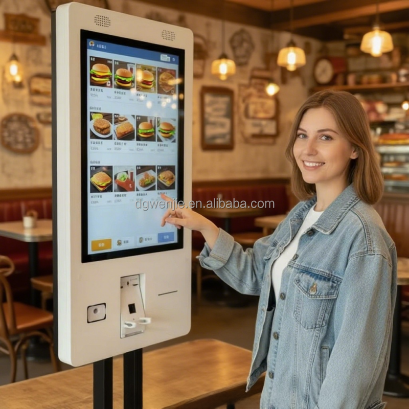 Terminal d'auto-enregistrement hôtelier 27 pouces avec distributeur de cartes de chambre, imprimante de billets, kiosque et machine de paiement en libre-service pour blanchisserie - Prix usine