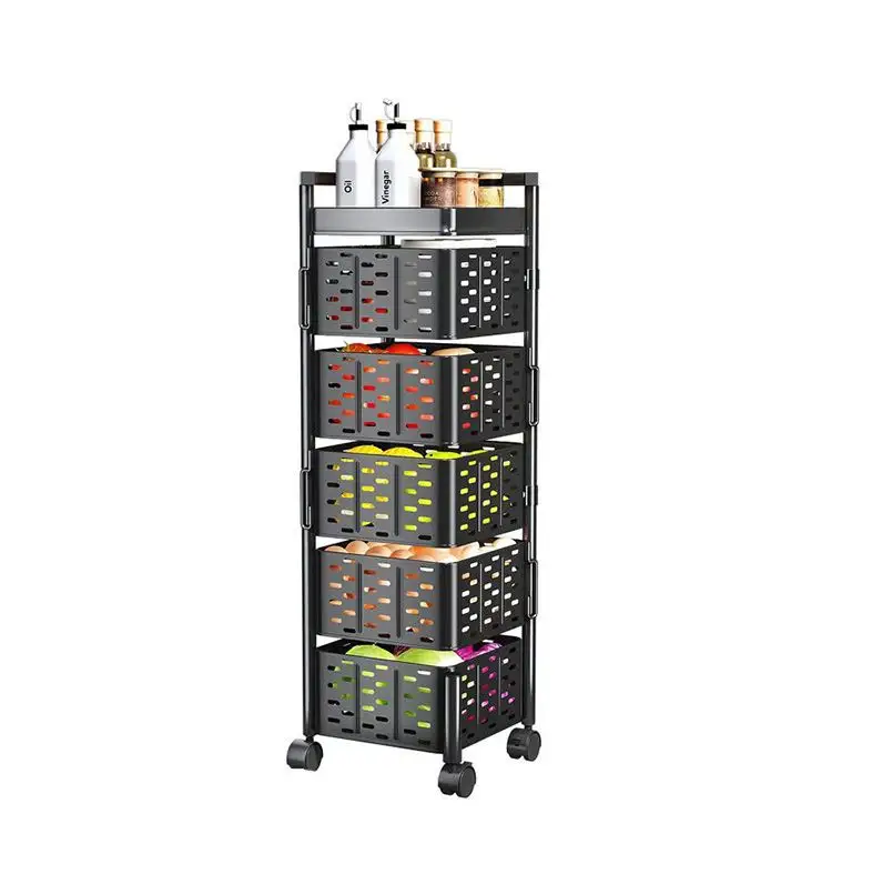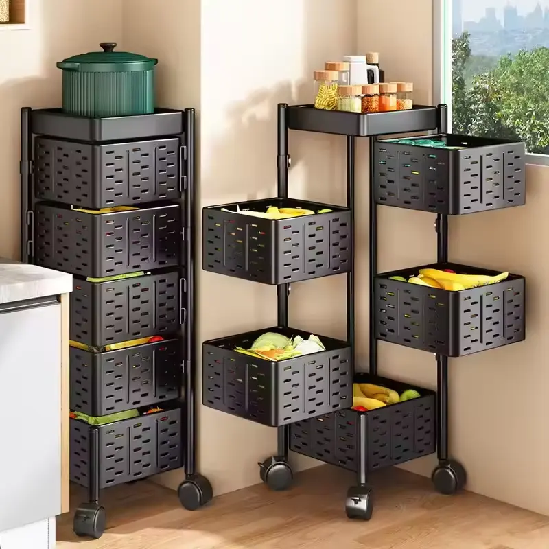 Prix d'usine, chariot rotatif, étagère carrée, facile à démonter, support de rangement rotatif, 2, 3, 4, 5 étages, rangement pratique pour la cuisine
