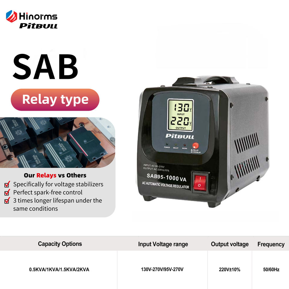 Factory Price SAB 0.5-2KVA Single Phase Home Use 220V Voltage Stabilizer Range Pitbull AVR Regulator for Small Appliances