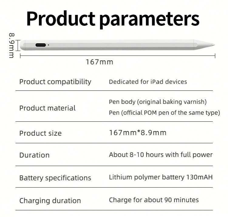 Attraction magnétique, Technologie de détection active, Rejet de la paume, Plume remplaçable, Détection d'angle d'inclinaison, Universel, 4 embouts de remplacementCaractéristique
