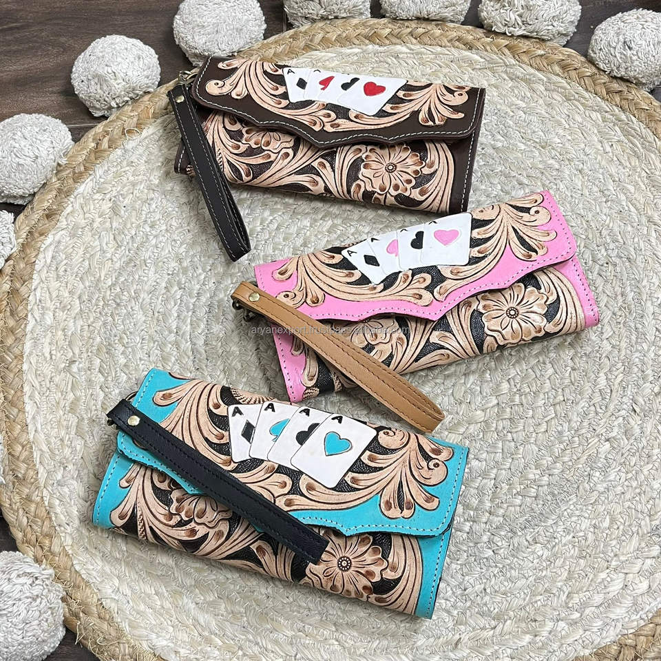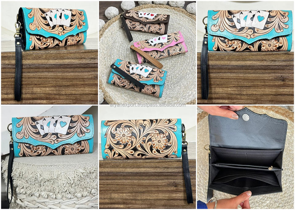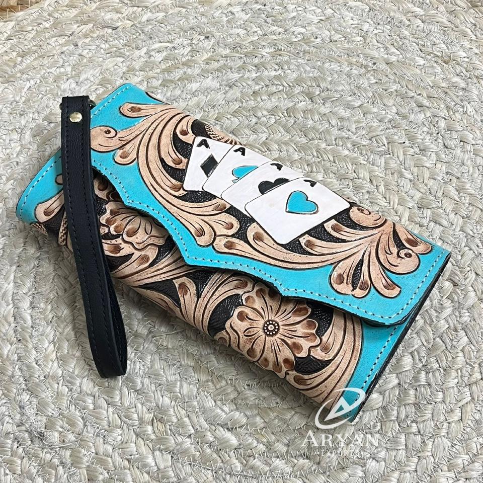 Product name:Hand Tooled Genuine Leather Wristlet Wallet