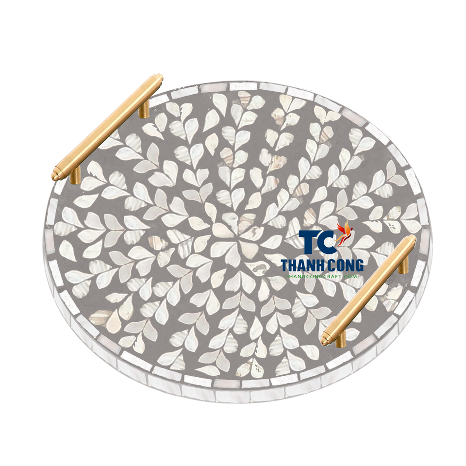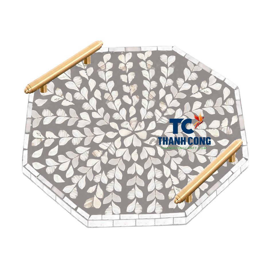Prix usine deux poignées incrustées nacre plateau de service avec conception de flore de chocolat pour Eid Mubarak-Vente en gros