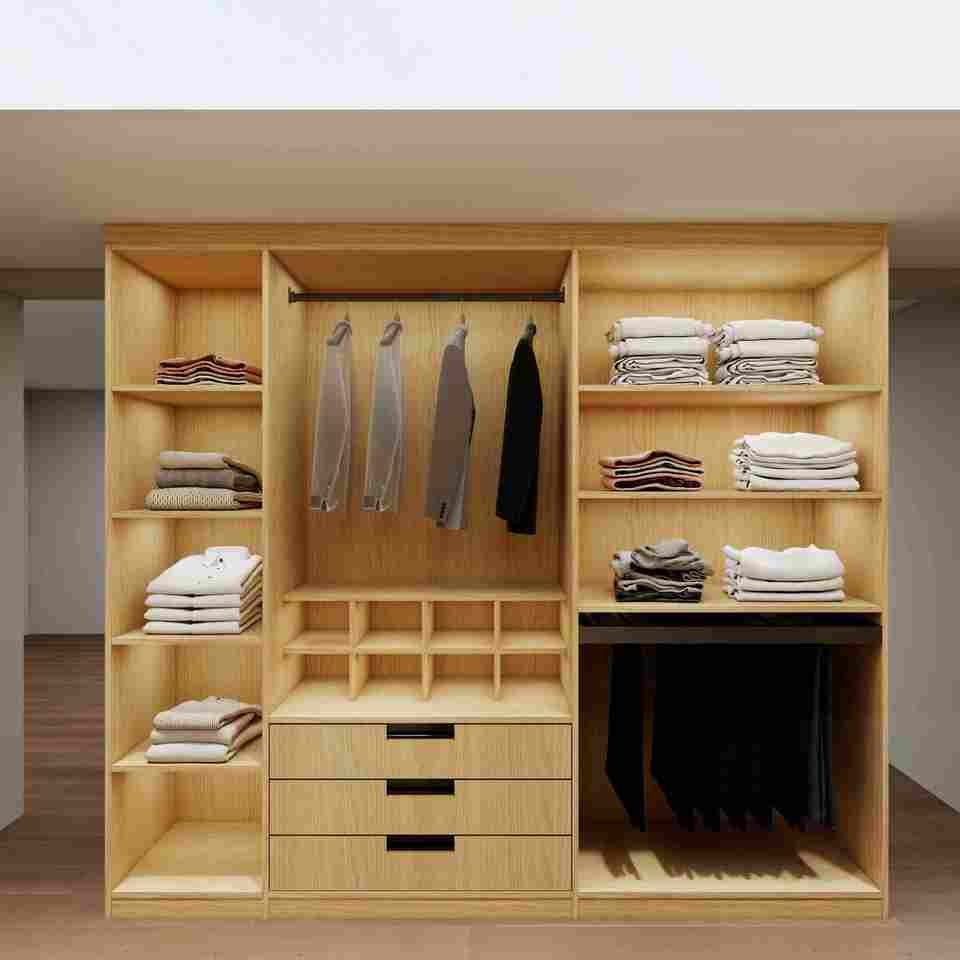 Organiseur de garde-robe à prix d'usine, garde-robe haut de gamme, garde-robe ouverte, garde-robe éco-finie, composants de rangement modulaires, disposition