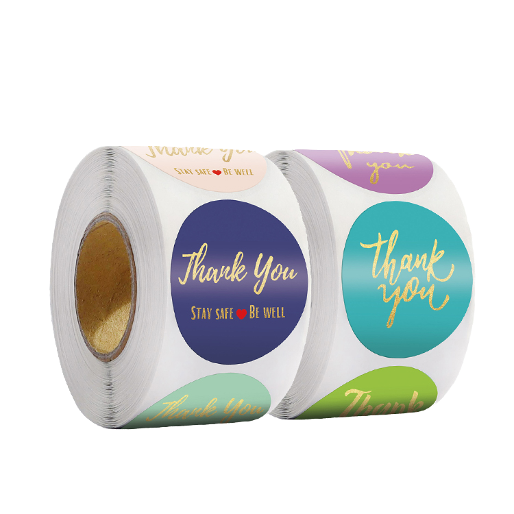 Autocollants adhésifs blancs imperméables à prix d'usine, texte en feuille d'or 'Merci', étiquettes personnalisables pour emballage de sacs/boîtes cadeaux