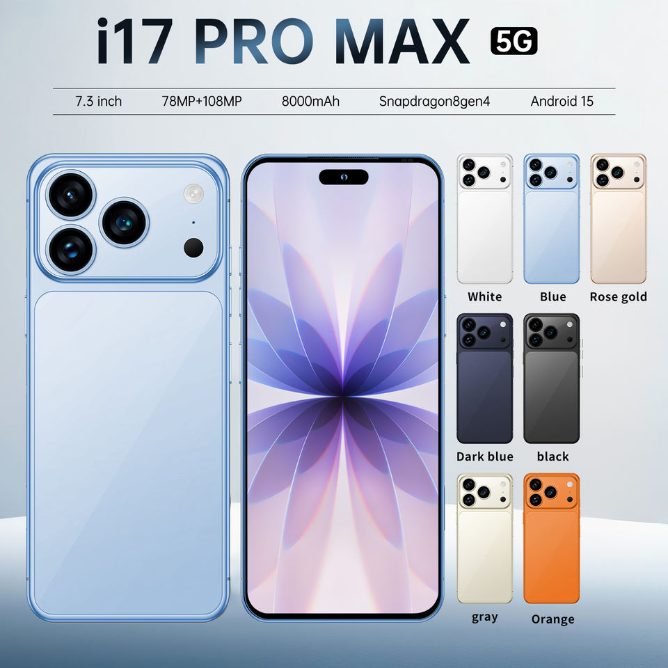 Prix d'usine, vente en gros, smartphone 5G Android 15 I17 Pro 16+1TB, batterie longue durée 8000mAh, smartphone Deca Core, bleu