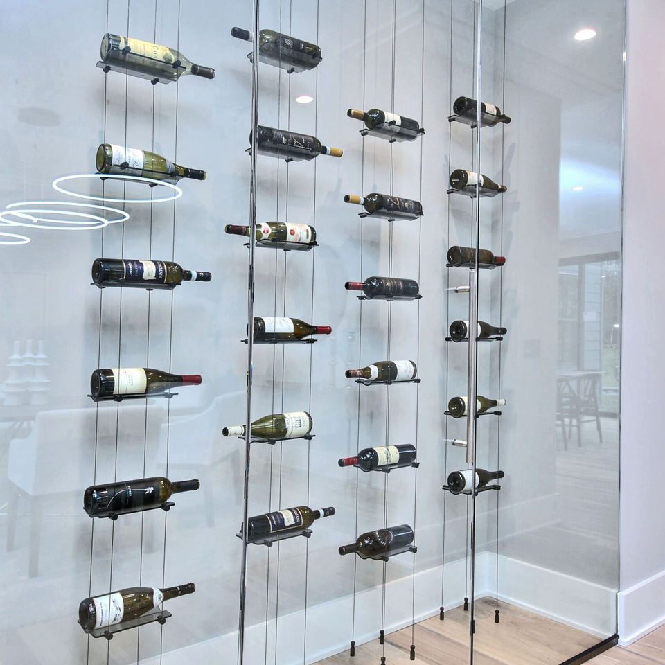 Prix d'usine Étagère à vin Porte-bouteille Casier à vin Câble métallique suspendu Système de câble à vin flottant avec verre propre et pince à ruban