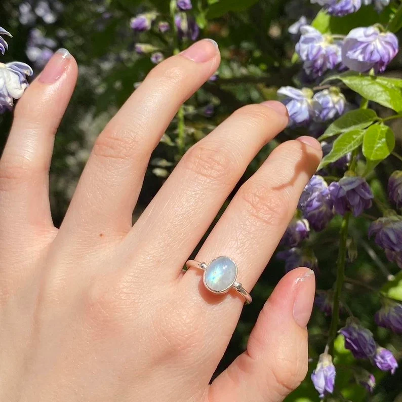 Prix usine femmes pierre de lune bagues de fiançailles bijoux 925 bijoux en argent Sterling bague Style bohême pierre de lune naturelle