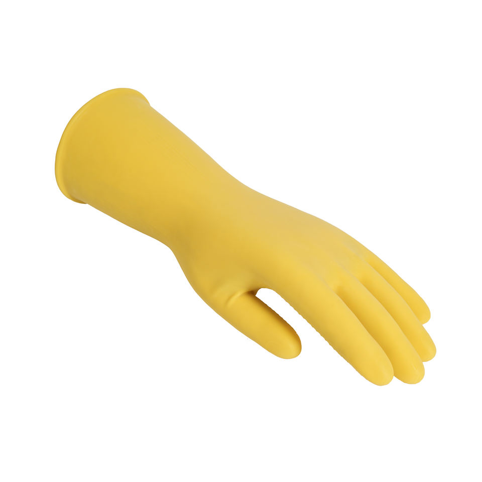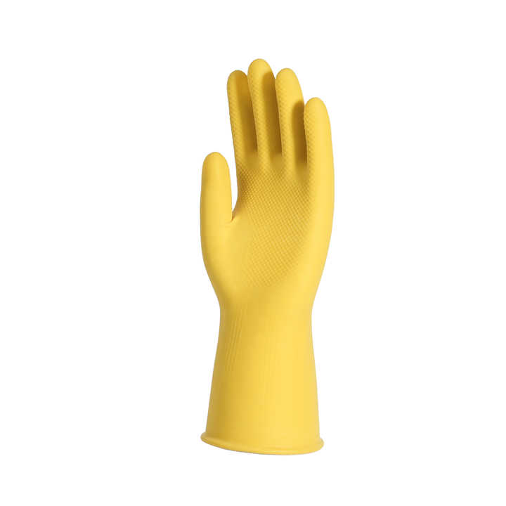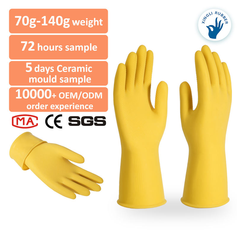 Prix usine gants en Latex de lavage de vaisselle de cuisine de sécurité pour femmes 30cm 100g jaune coloré troupeau doublé imperméable et léger