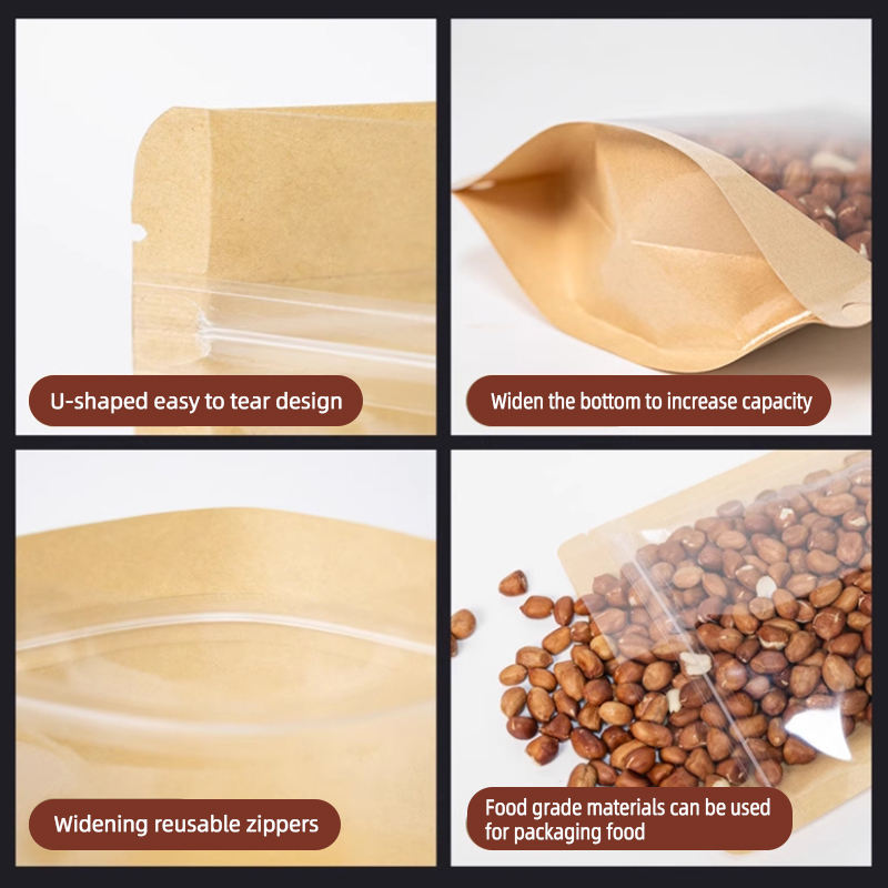Nom du produit:Sac d'emballage alimentaire en papier kraft à fermeture éclair