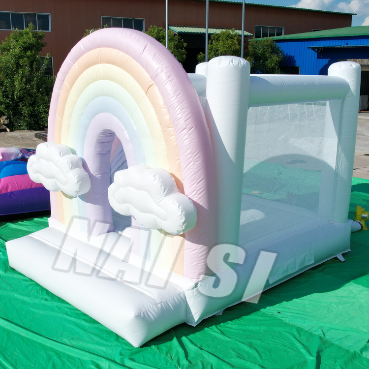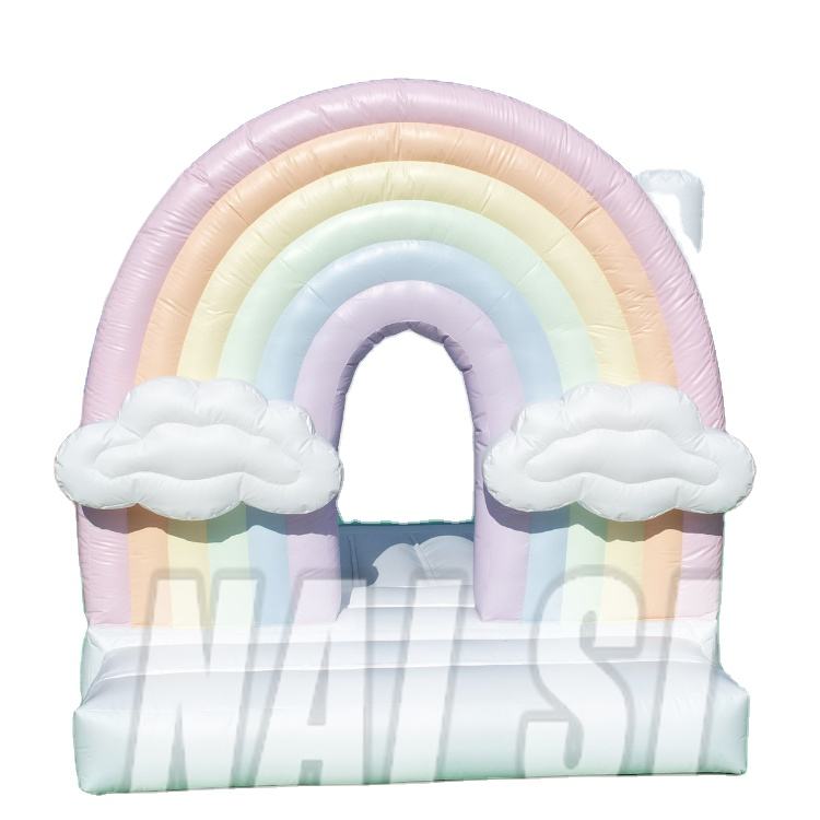 Château Gonflable Arc-en-ciel Pastel Prix Usine, Maison de Rebond Blanche Gonflable, Ballons Moonjumps pour Enfants et Adultes, Rebondisseur de Mariage à Vendre