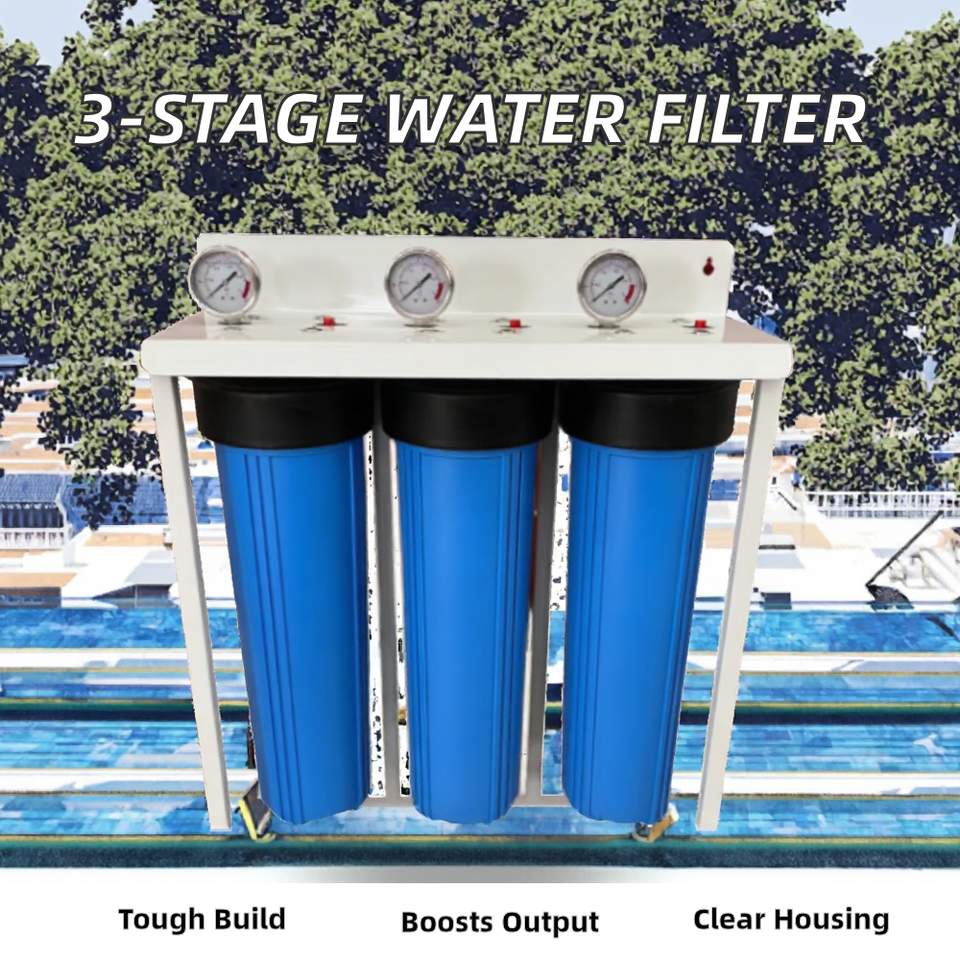 Boîtier de filtre à eau transparent en plastique de 20 pouces, prix usine, conception Jumbo à 3 étages pour machines de traitement de l'eau