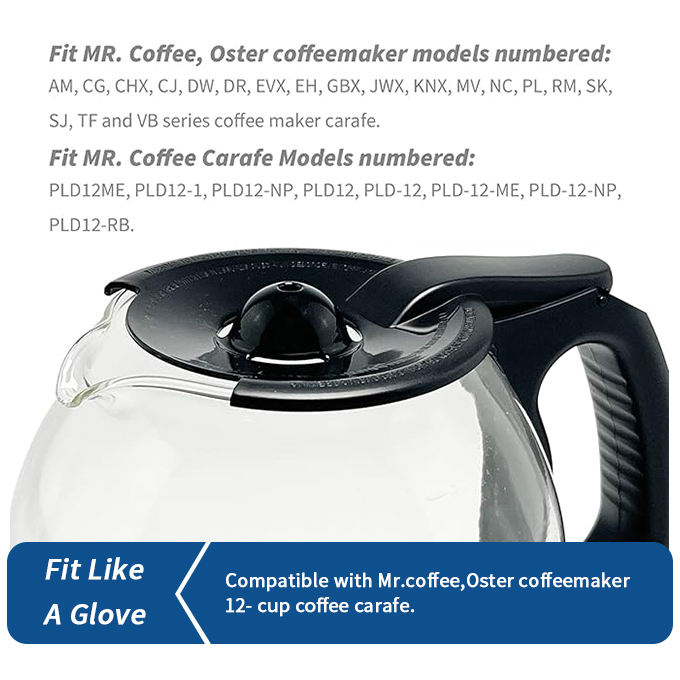 Prix usine couvercle de carafe de remplacement pour Mr. Coffee 12 tasses carafe à café en verre pièces de pot compatibles avec la cafetière goutte à goutte Oster