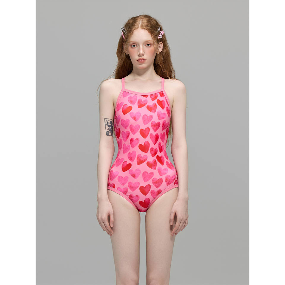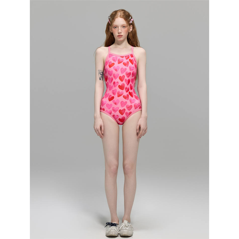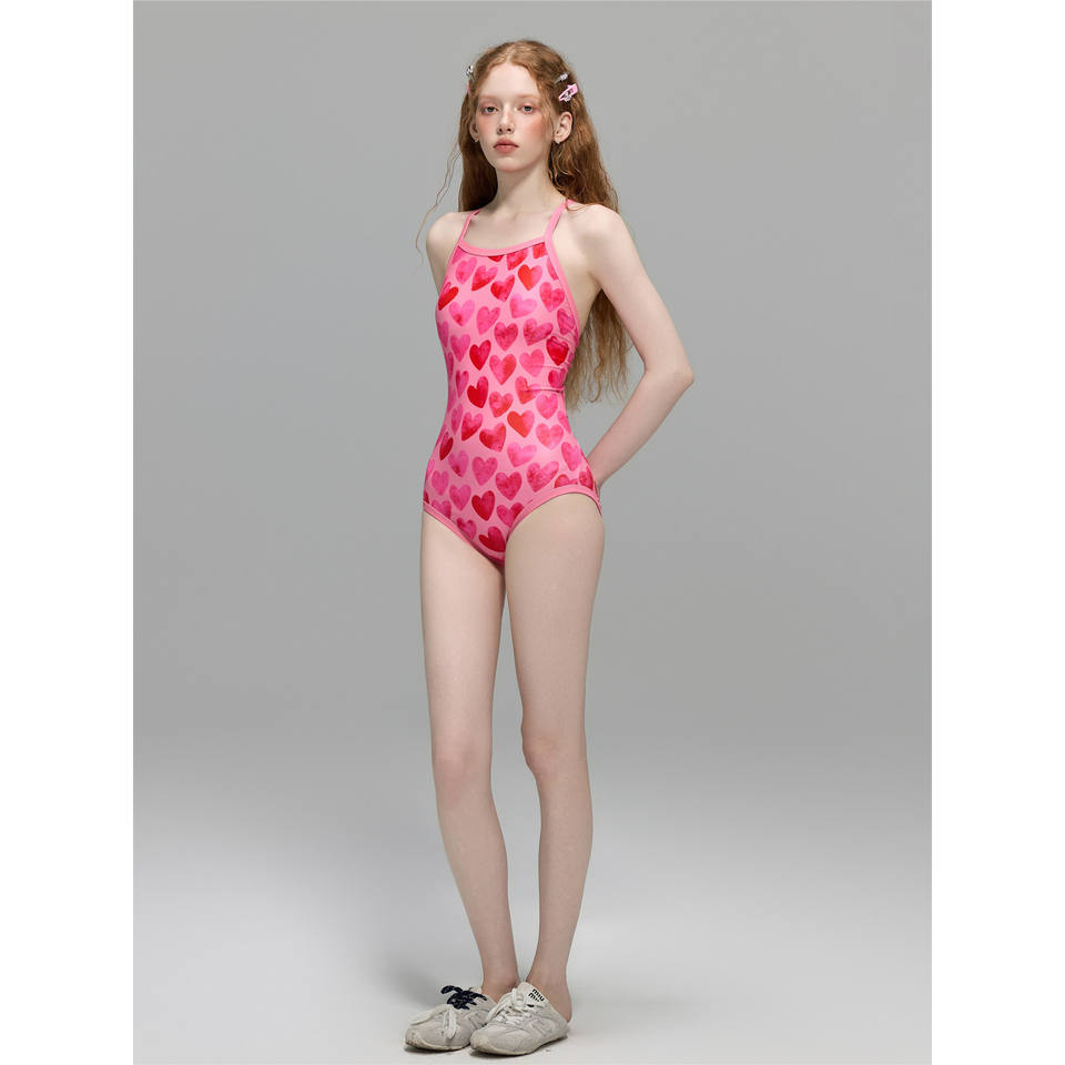 Maillot de bain une pièce imprimé extensible à col licou style princesse avec soutien-gorge triangle pour filles, idéal pour la piscine et les sources chaudes
