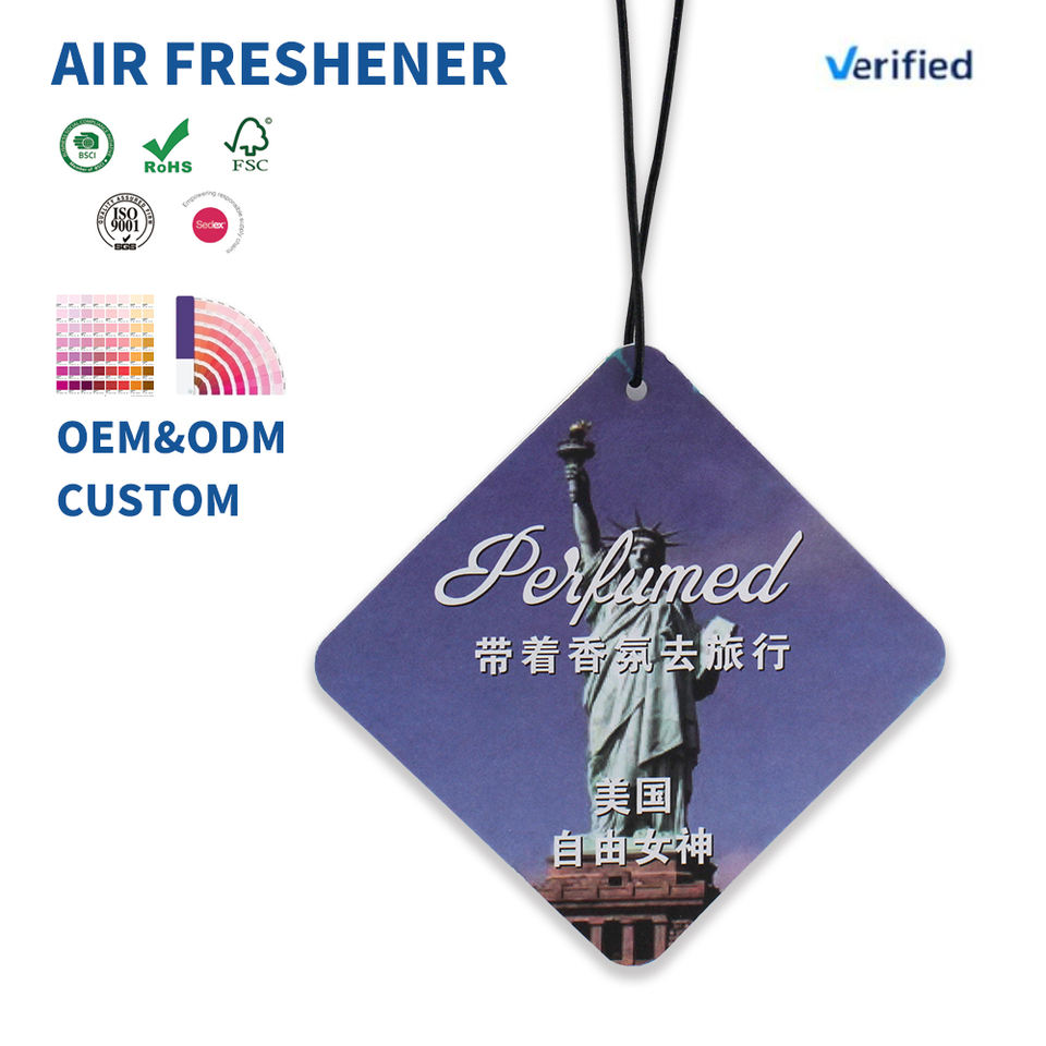 Désodorisant de voiture suspendu en papier imprimé en usine, parfum longue durée