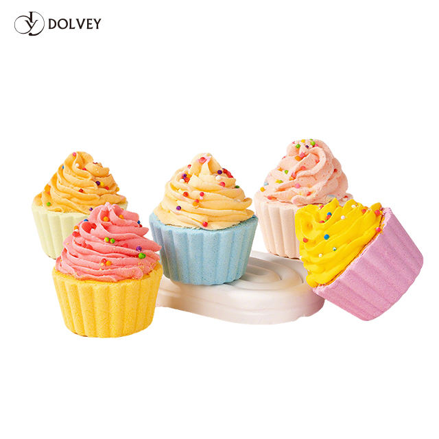 Ensemble cadeau de bain moussant coloré en forme de gâteau, vente en gros de marque privée d'usine, bombes de bain effervescentes véganes, cupcakes mignons pour enfants