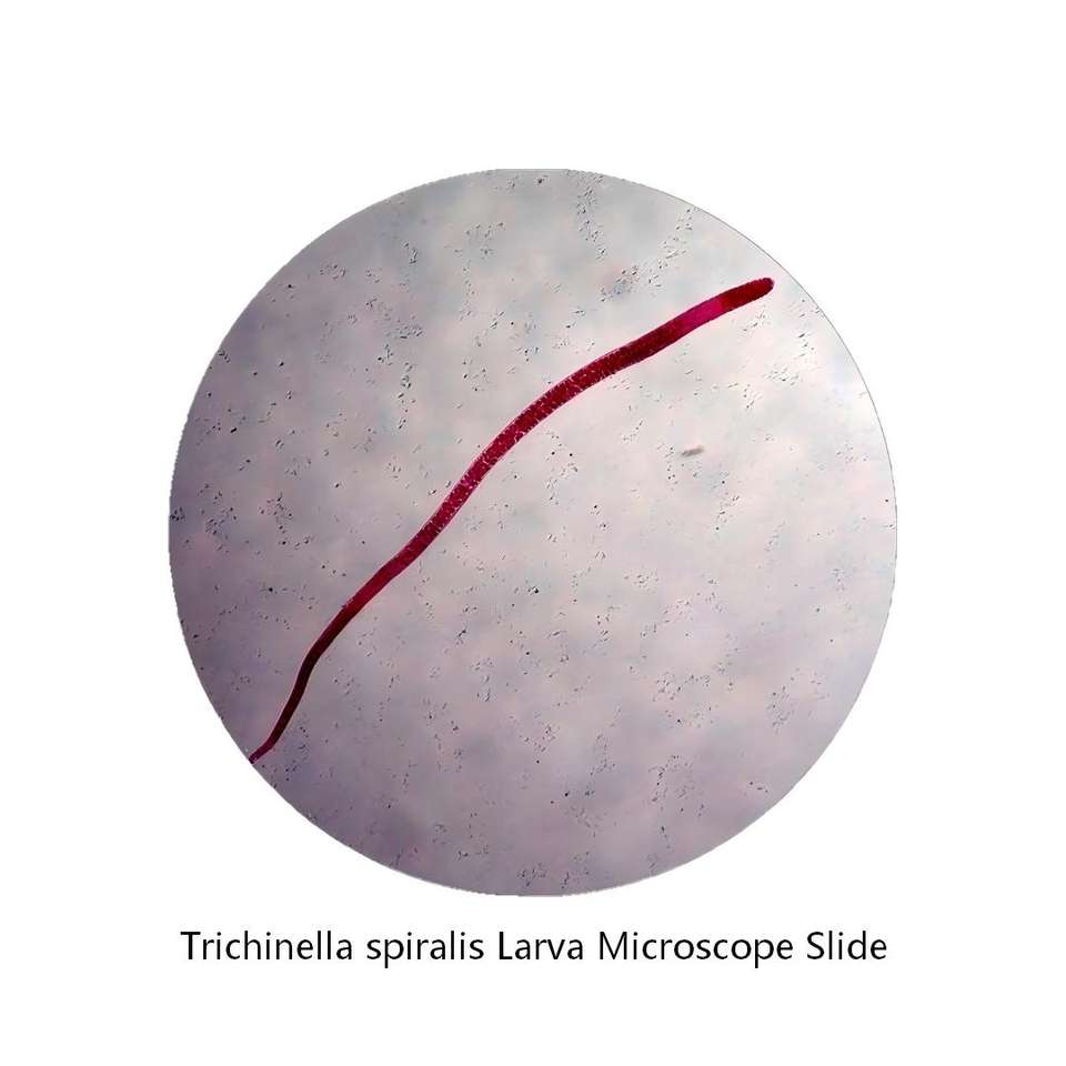 Lames de microscope histologiques fabriquées en usine, préparations de larves de Trichinella spiralis pour la science médicale et l'enseignement scolaire