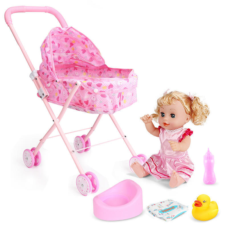 Poussette pliable pour bébé en plastique fabriquée en usine, jouet de simulation de voiture pour poupée, jouet pour enfants de 5 à 7 ans