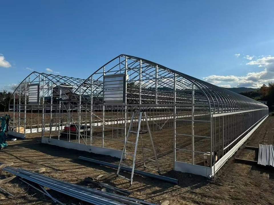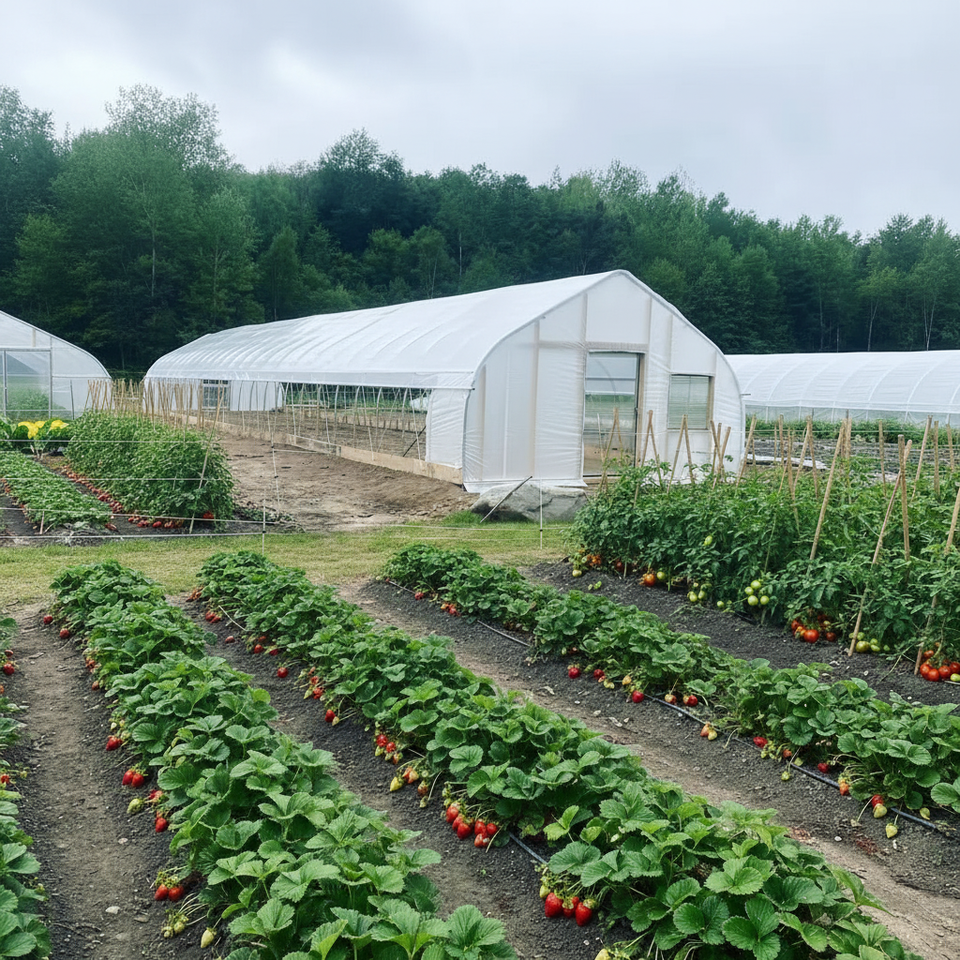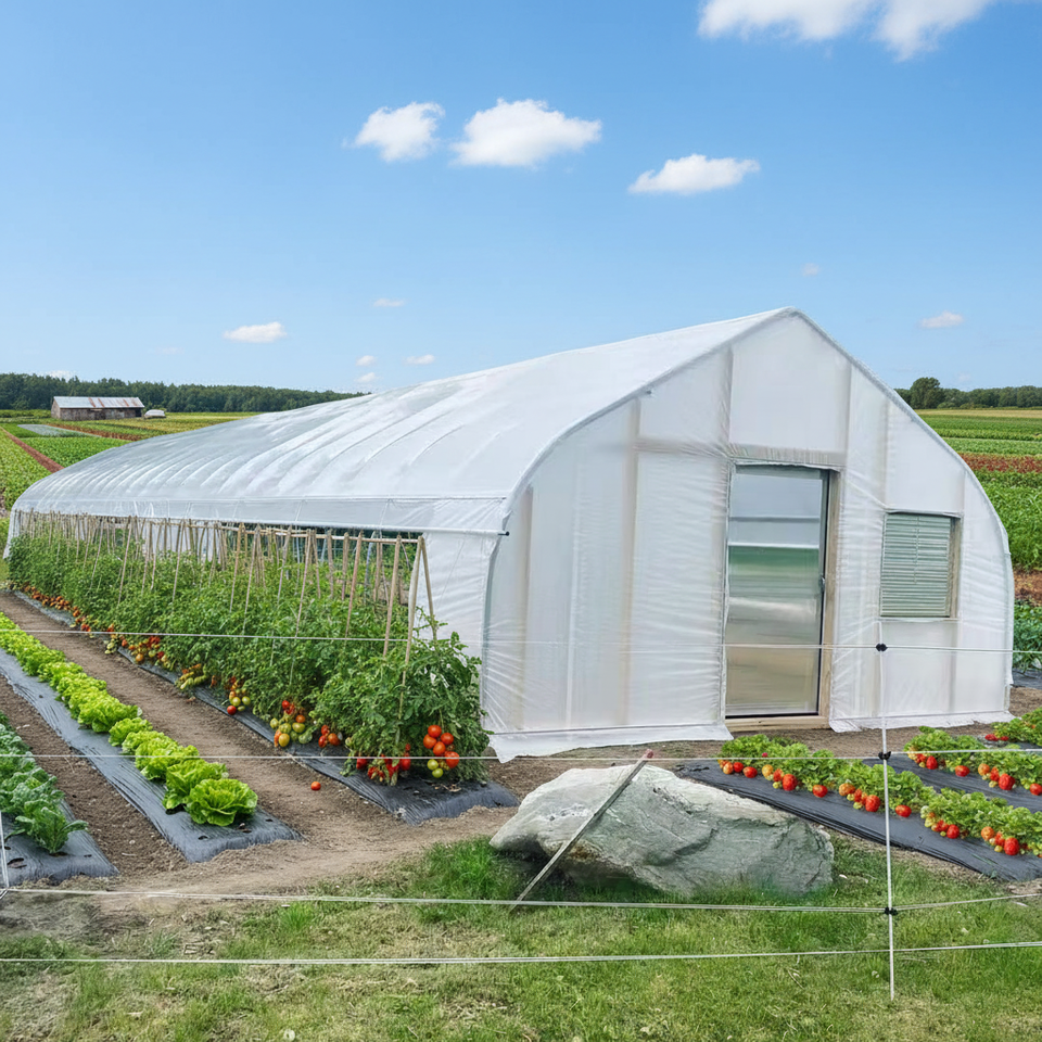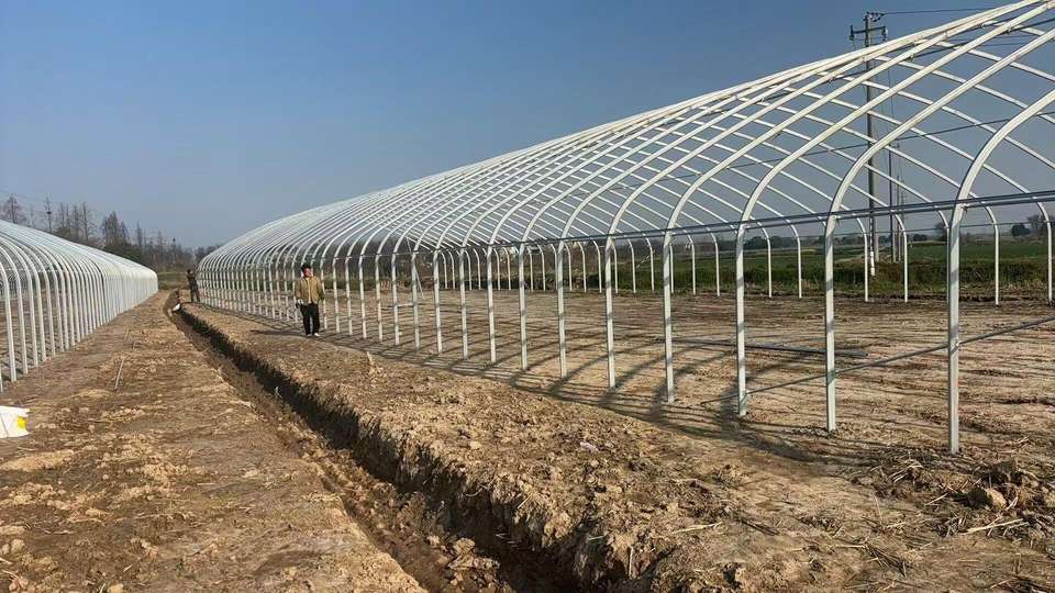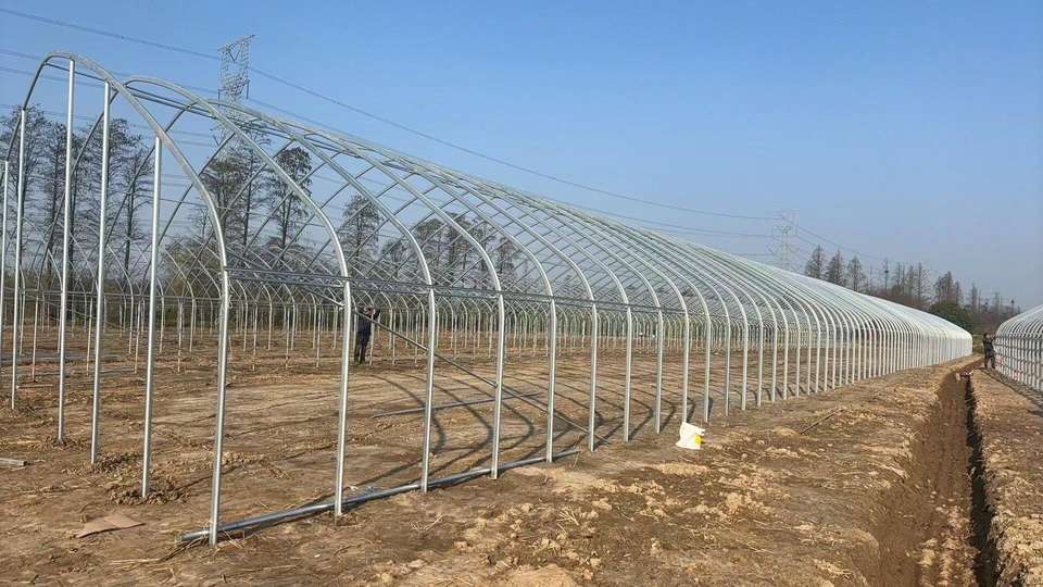 Serres arquées simples de fabrication industrielle pour légumes, fruits et fleurs, idéales pour la culture printanière et automnale.