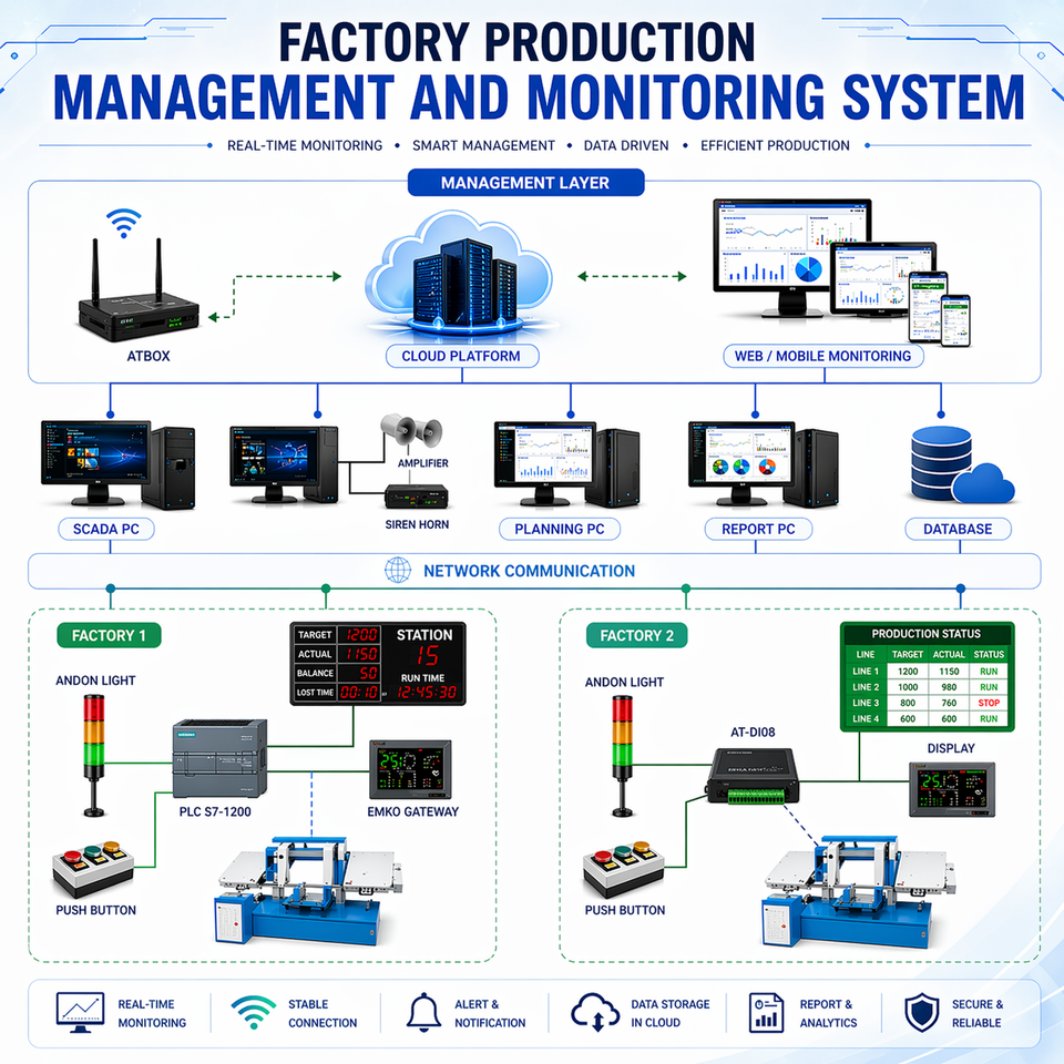 Gestion et surveillance de la production en usine – Plateforme SCADA gratuite | Système ATScada – Disponible en version OEM