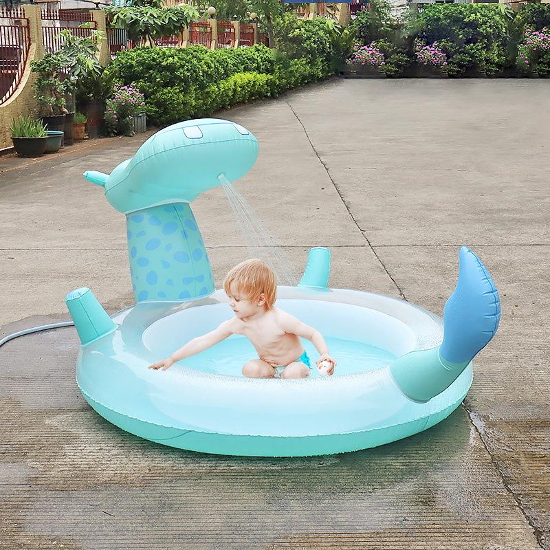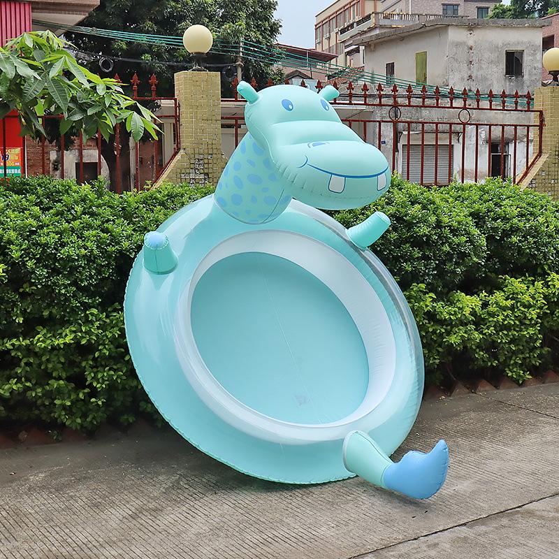 Production en usine PVC gonflable hippopotame arroseur piscine extérieure enfants jouer fontaine d'eau avec boule océanique pour les enfants