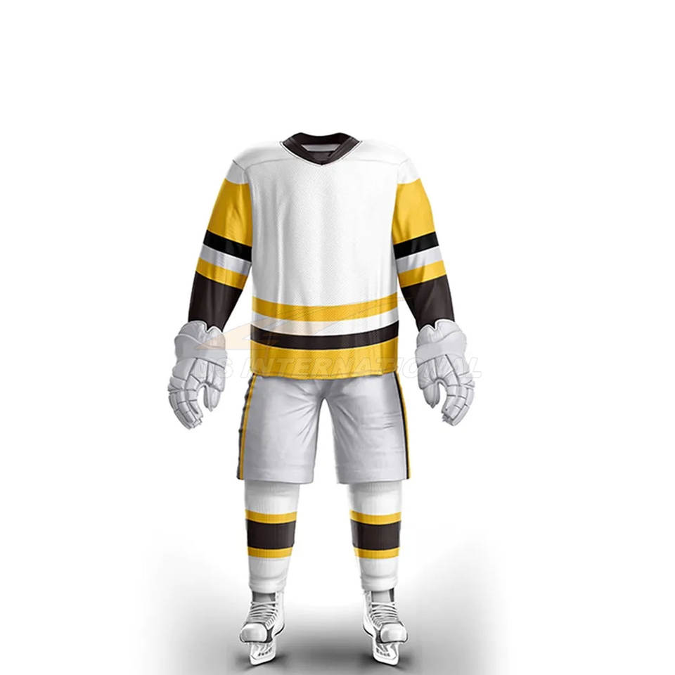 Taux d'usine sur mesure uniforme de Hockey sur glace de qualité supérieure 100% tissu Polyester prix de gros ensemble de shorts de maillot de sports d'équipe