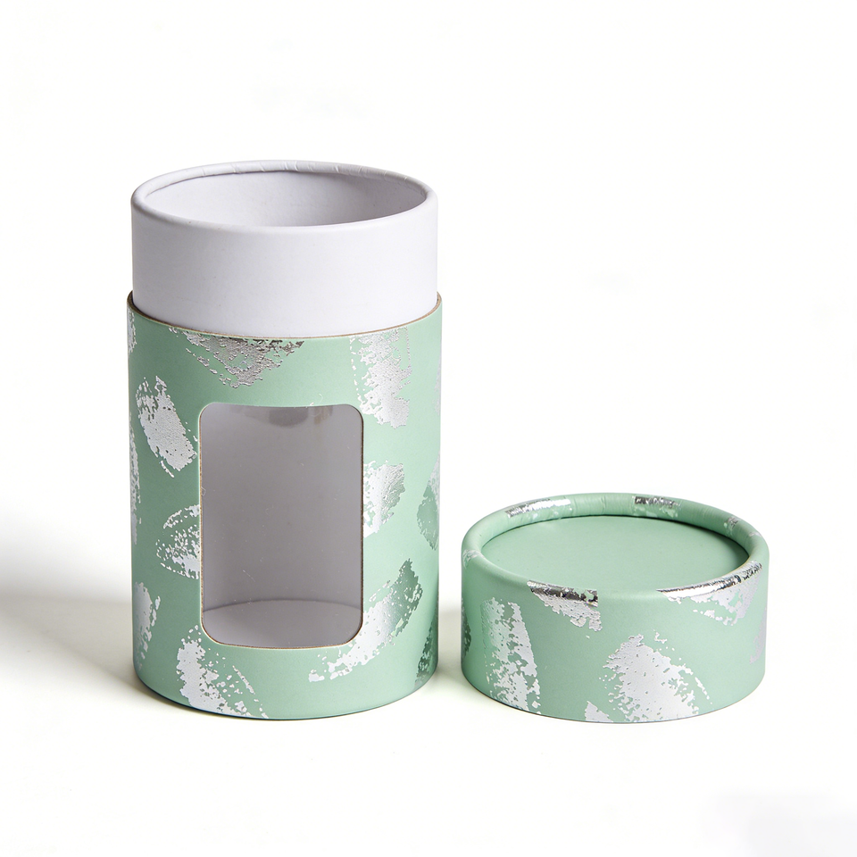 Emballage en tube de papier kraft rond pour thé, tube en carton biodégradable avec fenêtre transparente