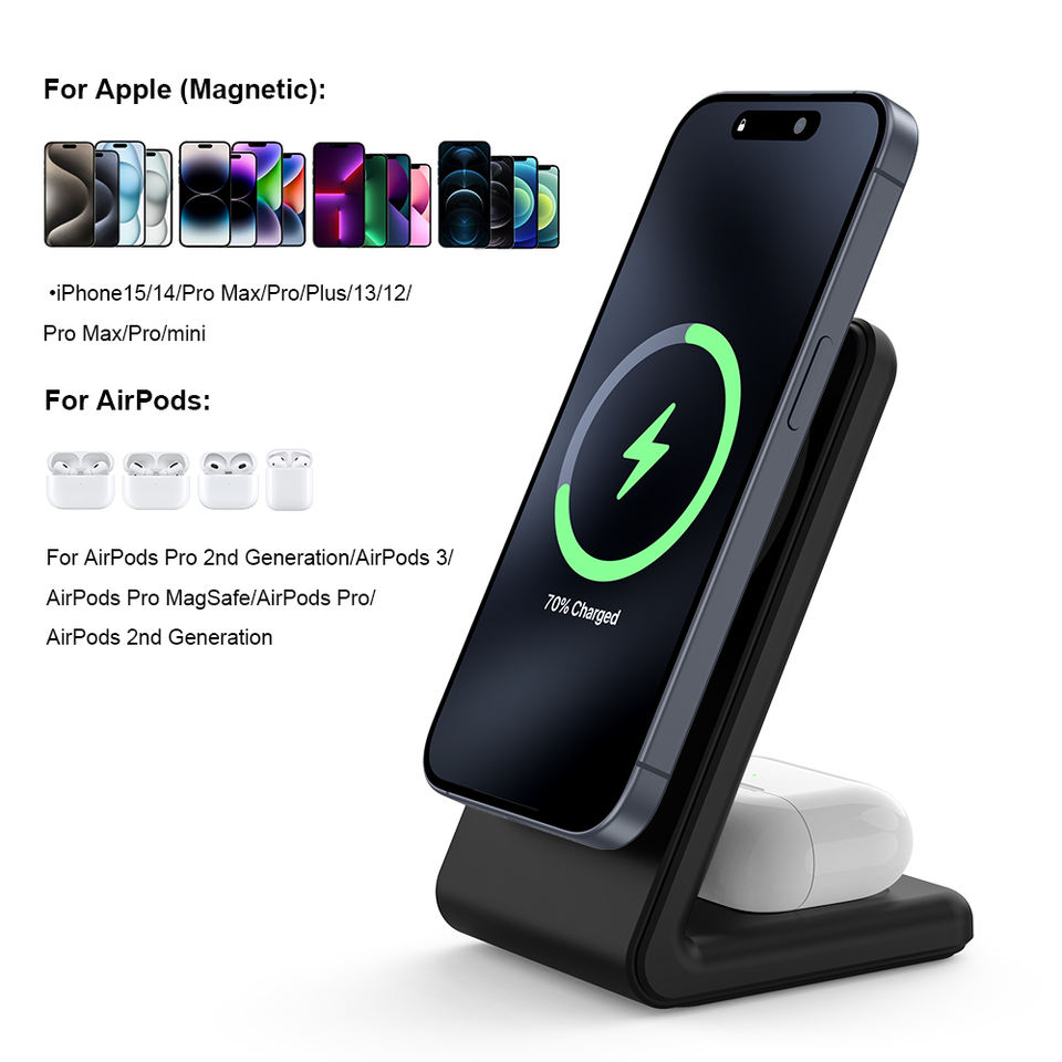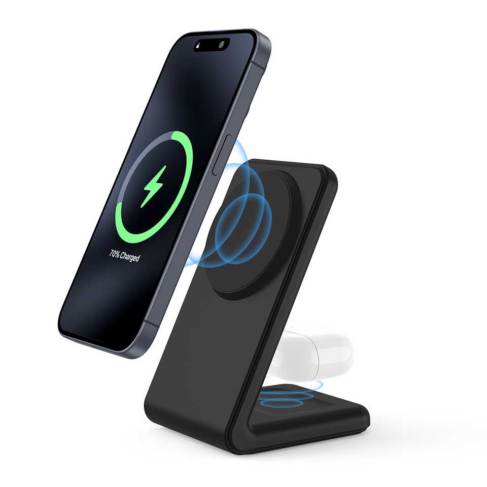 Vente d'usine 2 en 1 support de charge magnétique sans fil écouteurs de téléphone chargeur de Station de charge sans fil