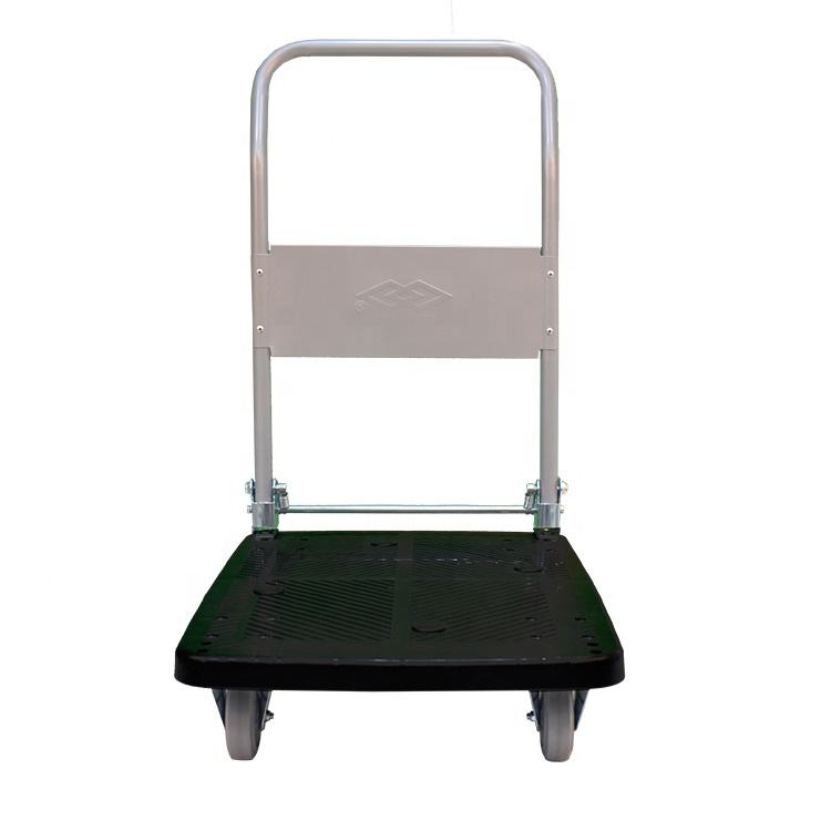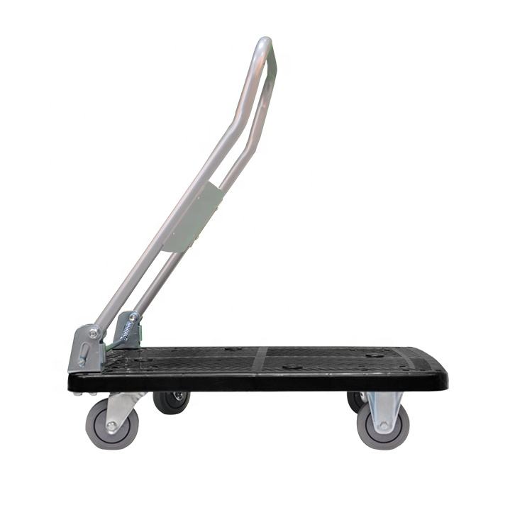 Vente d'usine 300 kg Chariot à plateforme en plastique avec roulettes élastiques durables, poignée pliable, chariot à plateforme, chariot à main