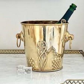 Usine Vente Style Attrayant Laiton Métal Seau À Glace Antique Hôtels Bar Fournitures En Acier Inoxydable Refroidisseur Seau À Glace Fabriqué en Inde