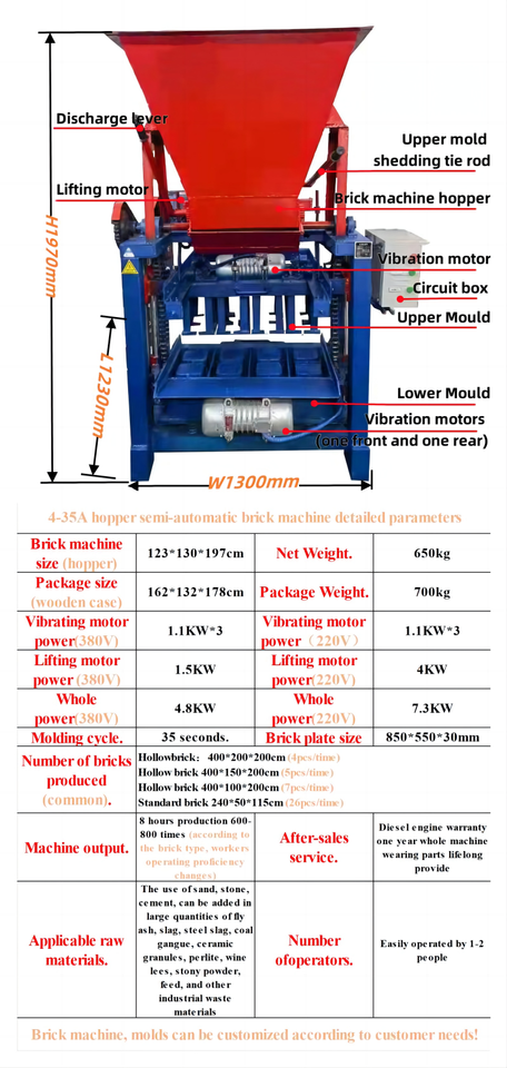 Composants de base:Moteur de vibration, moteur de levage, moules de machine