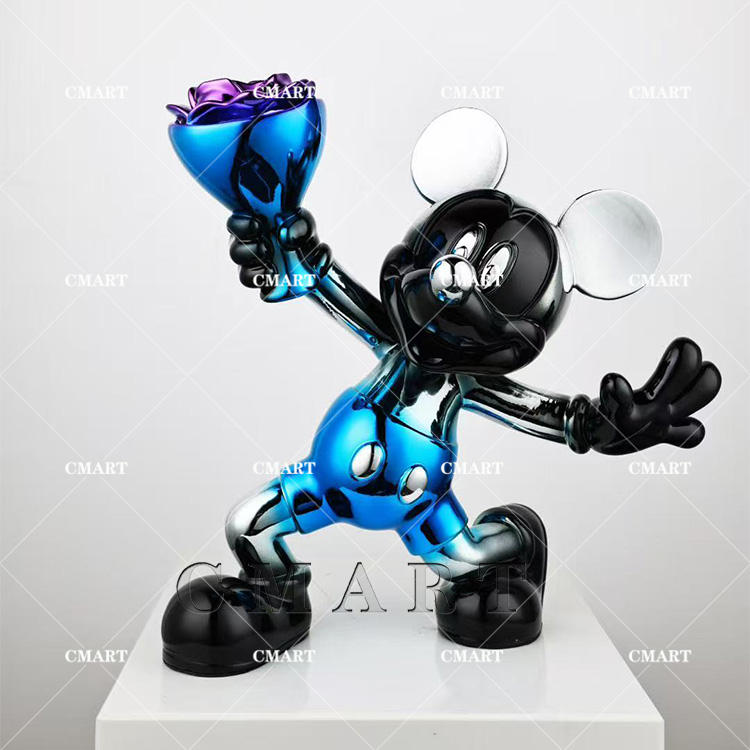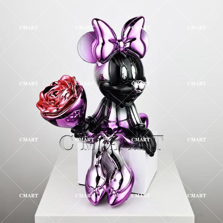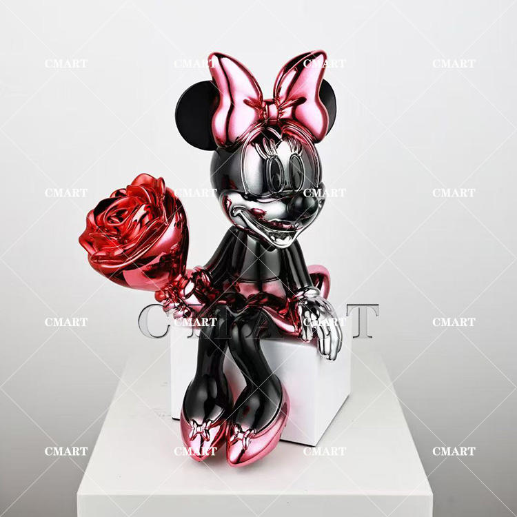Vente d'usine : Sculpture de souris de dessin animé chromée, Ornement de décoration intérieure Minnie, Sculpture Pop Art Mickey aux couleurs électrolytiques