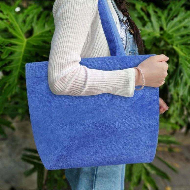 Soldes d'usine : Sac fourre-tout de plage en tissu éponge imperméable, simple et tendance, avec fermeture éclair, en polyester, pour femme