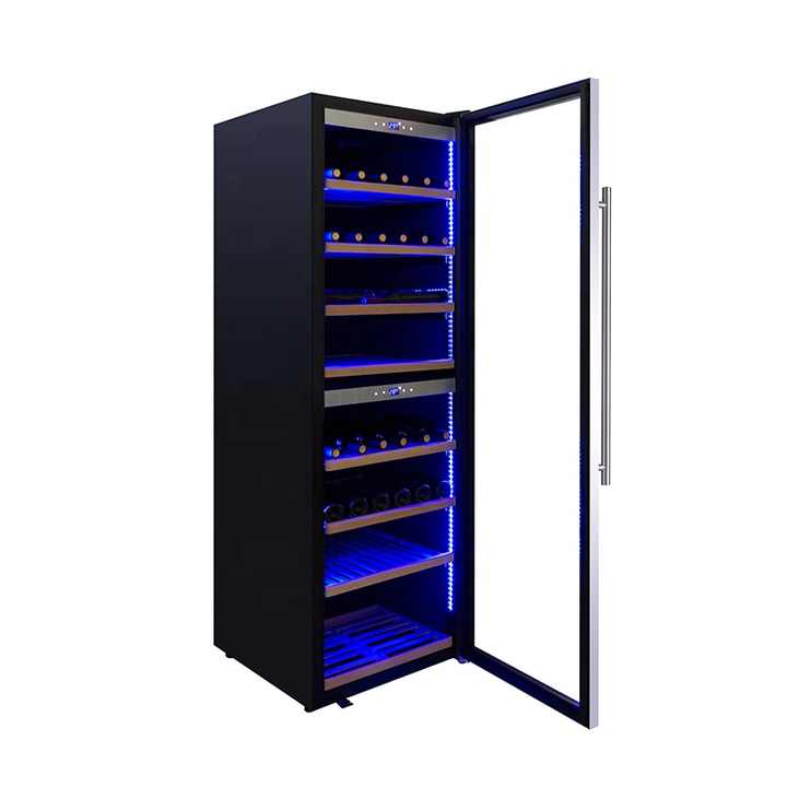 Vente d'usine double zone autoportant lumière bleue réfrigérateur de cave à vin à compresseur