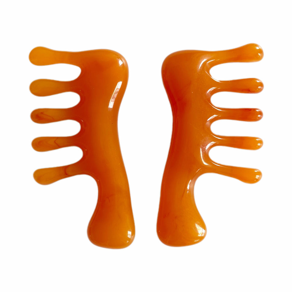 Vente directe usine : Peigne de massage Gua Sha en résine à tête ronde à cinq dents pour le cuir chevelu et les méridiens