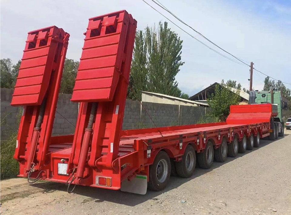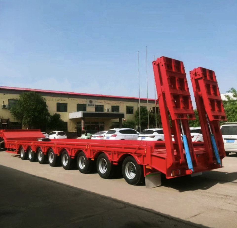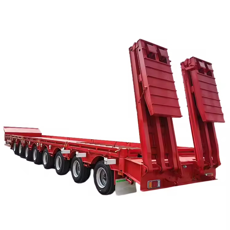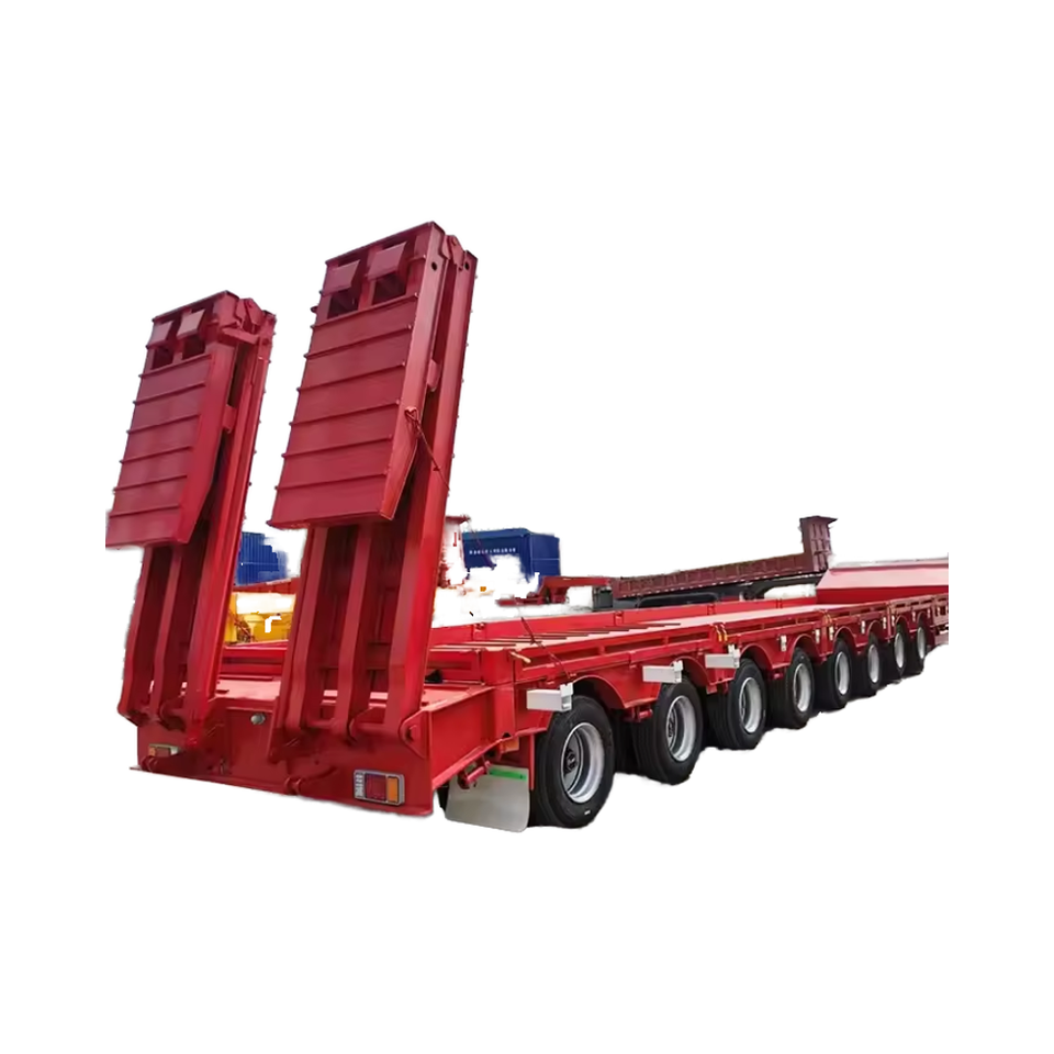 Vente d'usine Transport de machines à usage intensif 7-10 essieux 20-100ton camion à plate-forme basse remorquage semi-remorque avec rampe hydraulique