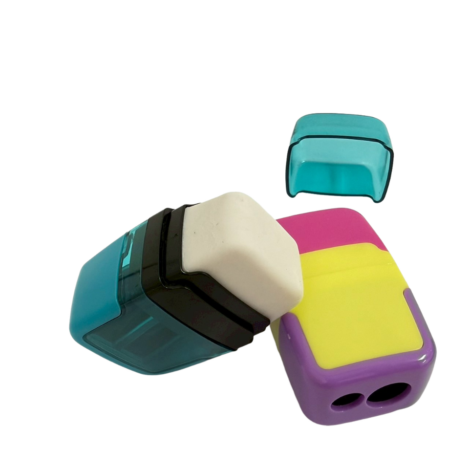 Vente directe usine – Meilleure vente : Taille-crayon carré 2-en-1 de qualité supérieure avec 2 trous, en ABS, 3,5x2,5x5,8 cm, avec gomme