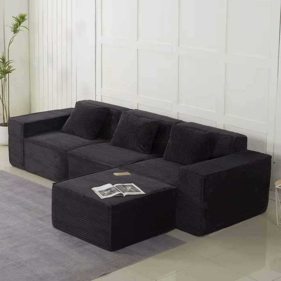 Factory Sale Modern Modular L-Shaped Corduroy Sofa Set High Density Full Foam Vacuum Packed Couch for Living Room
