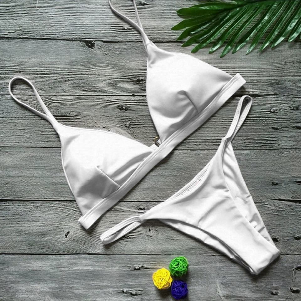 Vente directe usine – Bikini femme grande taille personnalisé avec logo OEM, micro-soutien-gorge push-up, bas string, motif uni, décolleté dos nu