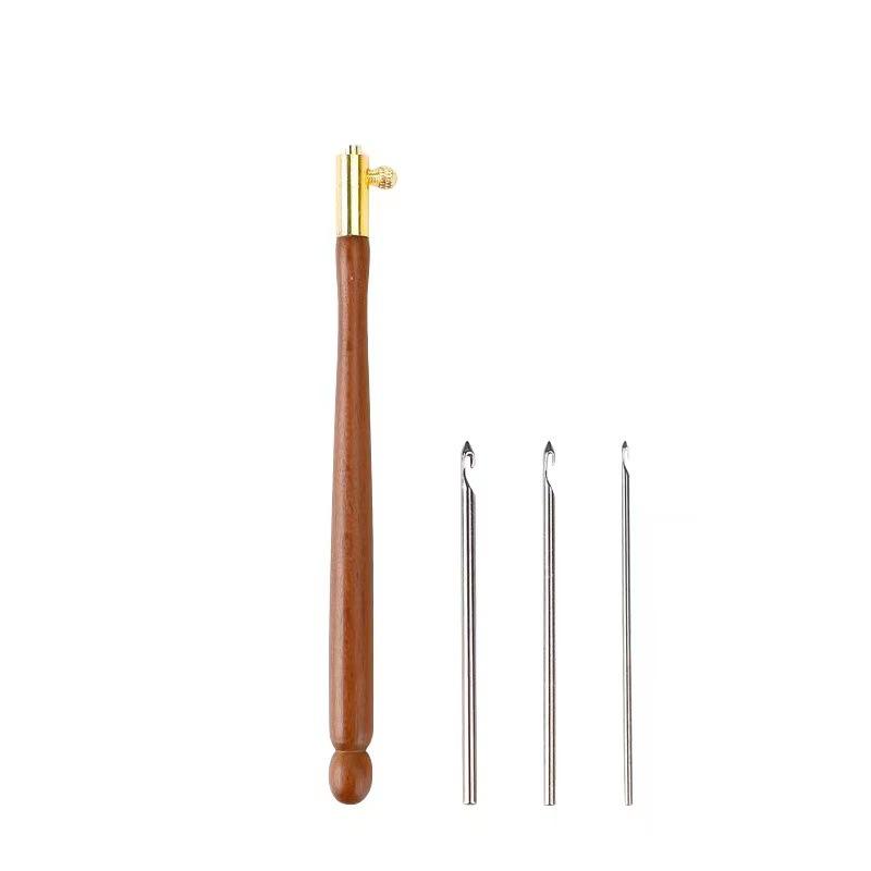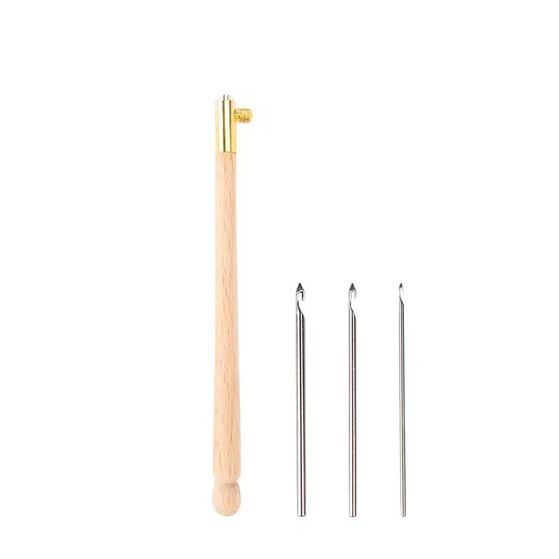 Vente d'usine manche en bois broderie perles aiguille outils paillettes perles aiguille ensemble Crochet trousse à outils Tambour crochet avec 3 aiguilles
